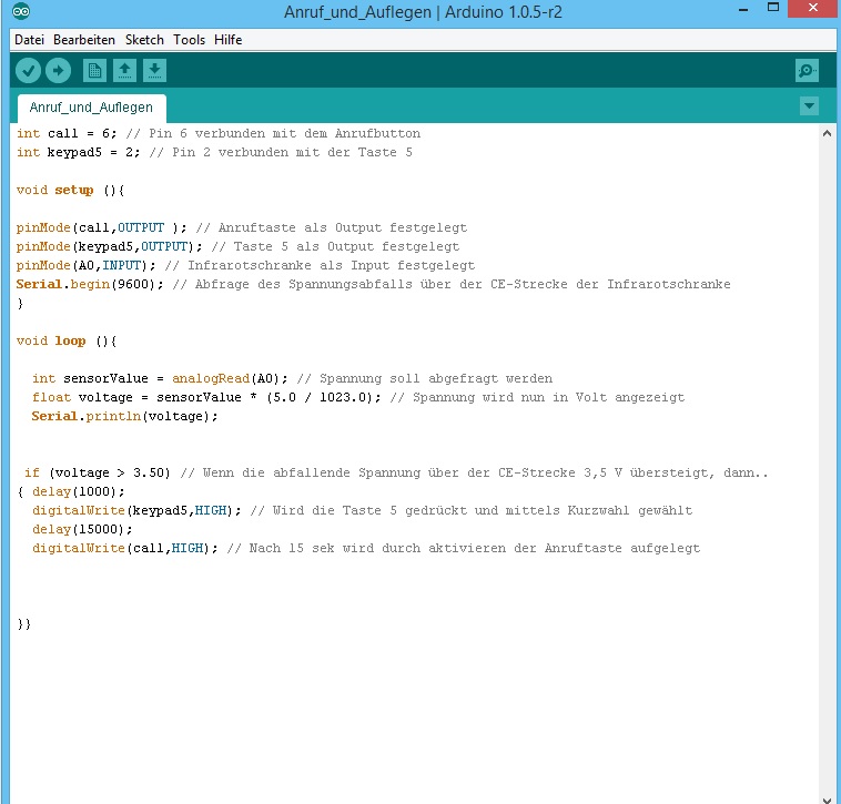 wir möchten eine Alarmanlage bauen, die mittels eines Infrarotsensors ein altes Handy ansteuert und mich dann auf meinem Smartphone anruft.