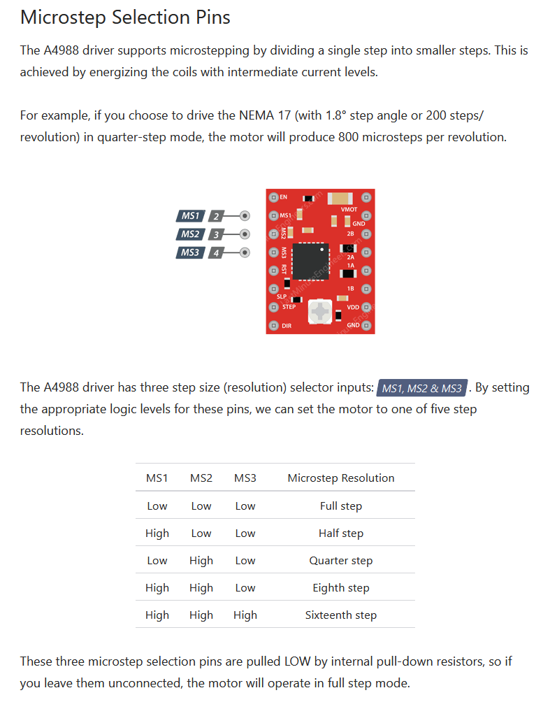 Kann MobaTools Microstepping? Wenn ja, wie stelle ich das ein, welche Parameter verändern sich dadurch? Hardwareseitig ist der A4988 bereits komplett verdratet, ich hatte 16x Microstepping mit Accelstepper bereits erfolgreich in Benutzung.