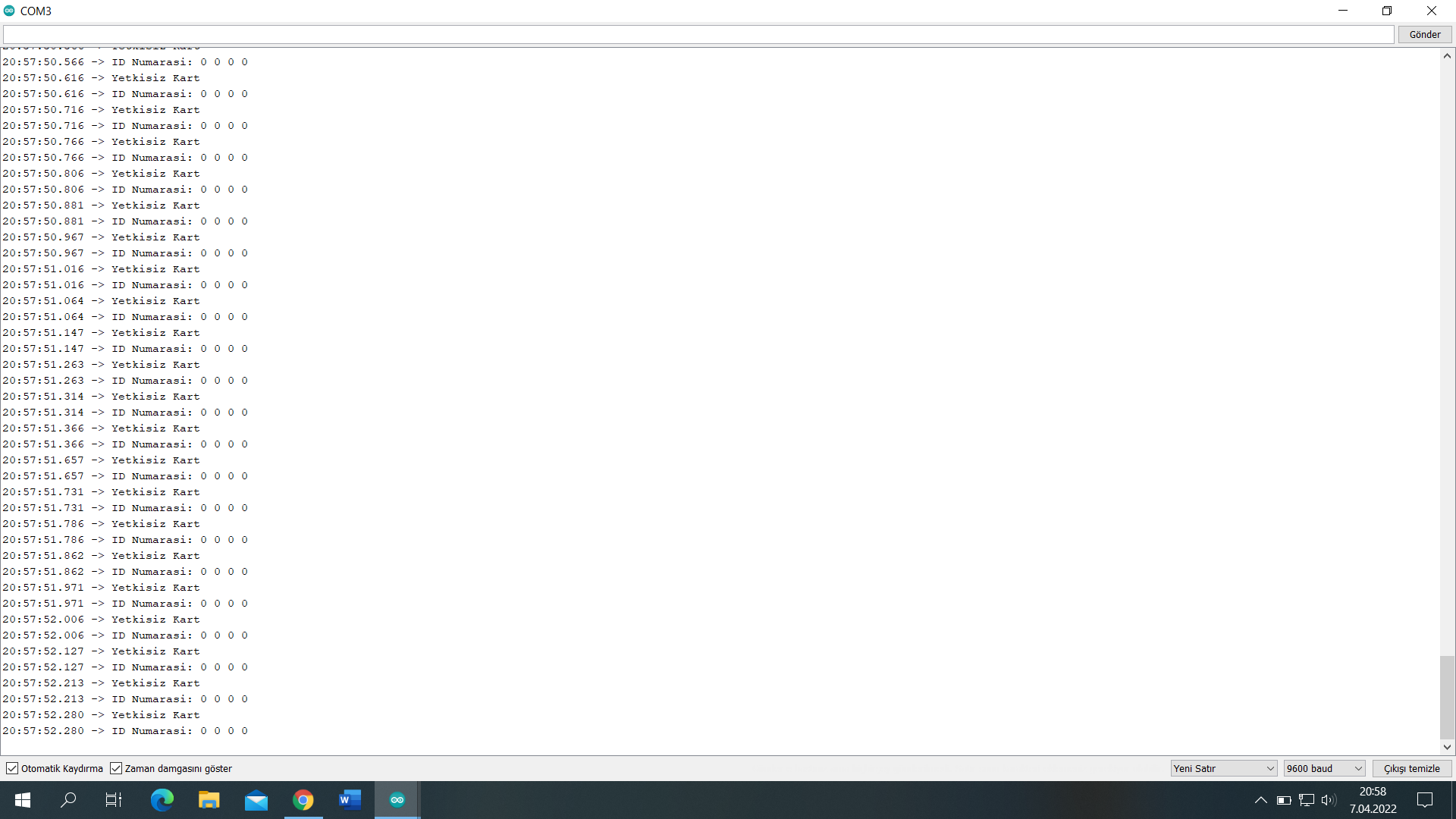 if (rfid.uid.uidByte[0] == ID[0] && //Okunan kart ID'si ile ID değişkenini karşılaştırıyoruz.