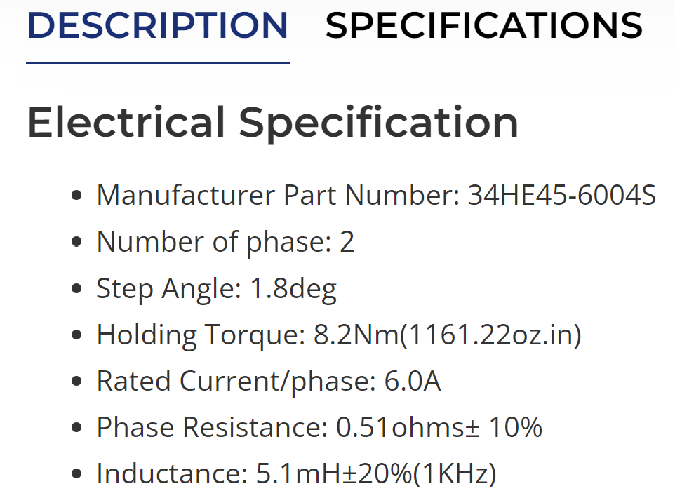 - Step Angle: 1.8deg