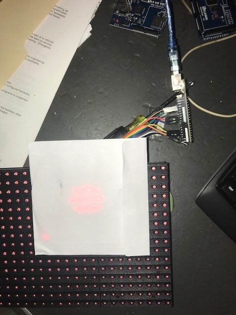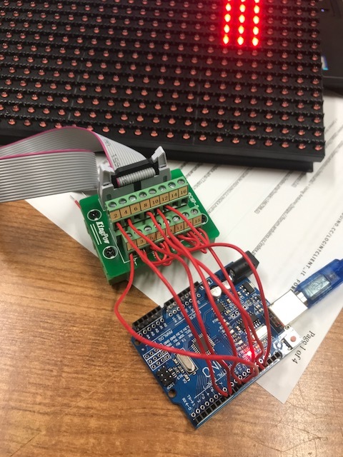 I started with a MAX7219 LED Matrix and an Arduino Mega 2560 to see whether or not I could get them to behave. I used the available wiring diagrams and was able to adjust some of the sample codes to achieve the results that I wanted, so I decided to upgrade to a P10 panel.