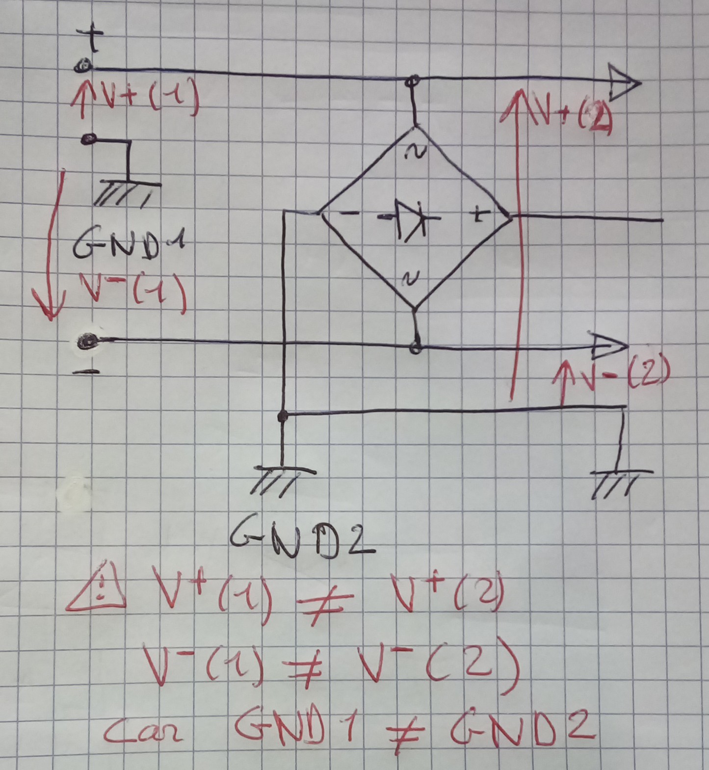 Avec un classique du pont redresseur à 4 diodes, on a vite fait de se mélanger les pinceaux avec 2 références 0V différentes là où c'est inutile.