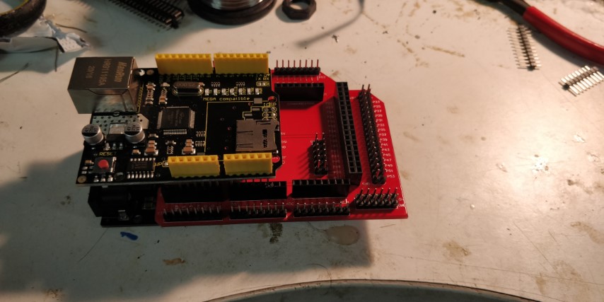 Pour ceux que ça intéressent et qu'ils veulent partir sur de l'arduino Mega, je peux fournir la carte fille que j'ai créé moyennant une dizaire euros . Il m'en reste 9 cartes. Je peux aussi fournir une prestation soudure si ça peut aider.