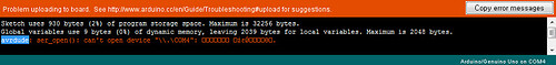 processing.app.SerialException: Serial port 'COM4' already in use. Try quiting any programs that may be using it.