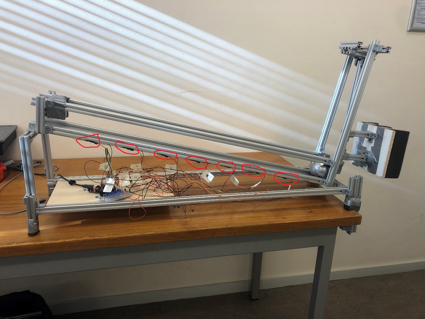 We are rolling a cilinder over a hill and have placed the a microswitches in between with a distance of 11cm in between. The time between the activation of the switches (so when switch 2 gets activated after switch 1 is activated) is at minimum 90ms.