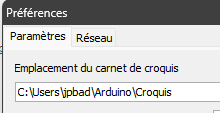 Le nom Arduino pour la base du répertoire projet n'est pas imposé. Tu peux lui donner le nom que tu veux et c'est celui qui doit apparaître dans les préférences comme expliqué au-dessus.