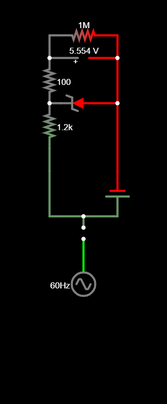 The ac voltage is set to 120vac. The dc voltage is set to 6.6V the voltmeter dont show any change but the circuit fades red to green when 120vac is connected?