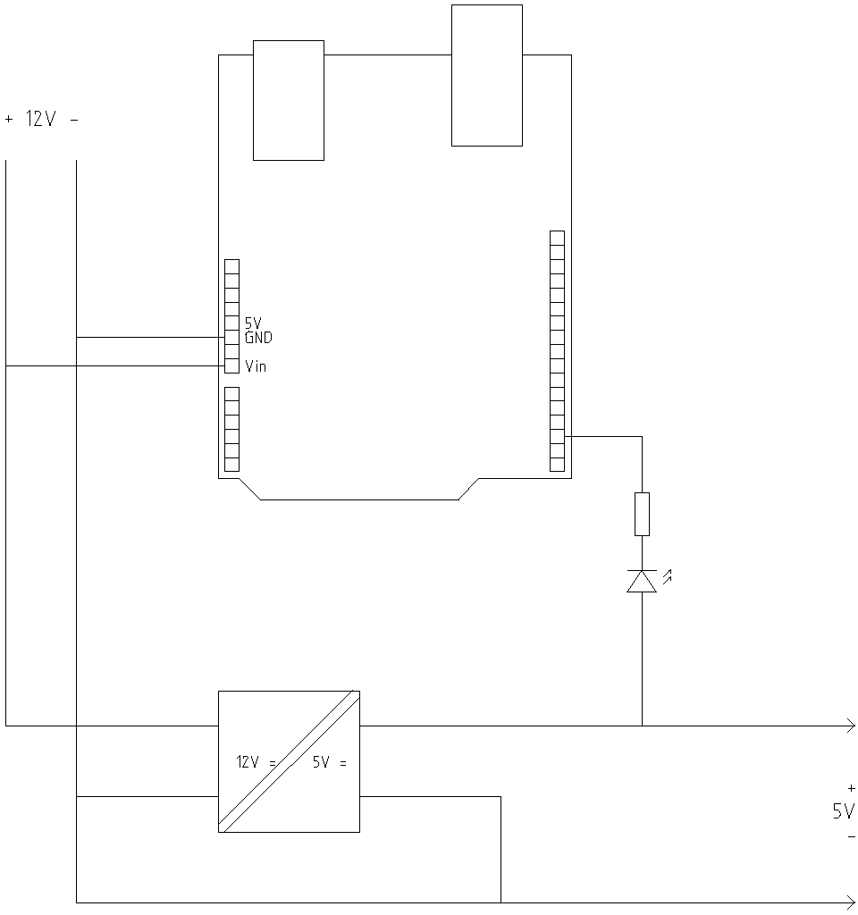 My Mega is powered by a power supply that I plugged into my wall outlet and is sending 12V to the VIN pin of the Mega. It also sends 12V through a buck converter to get it down to 5V, from which most of the items above (7-segment display, WS2812b strips, etc.) are powered.
