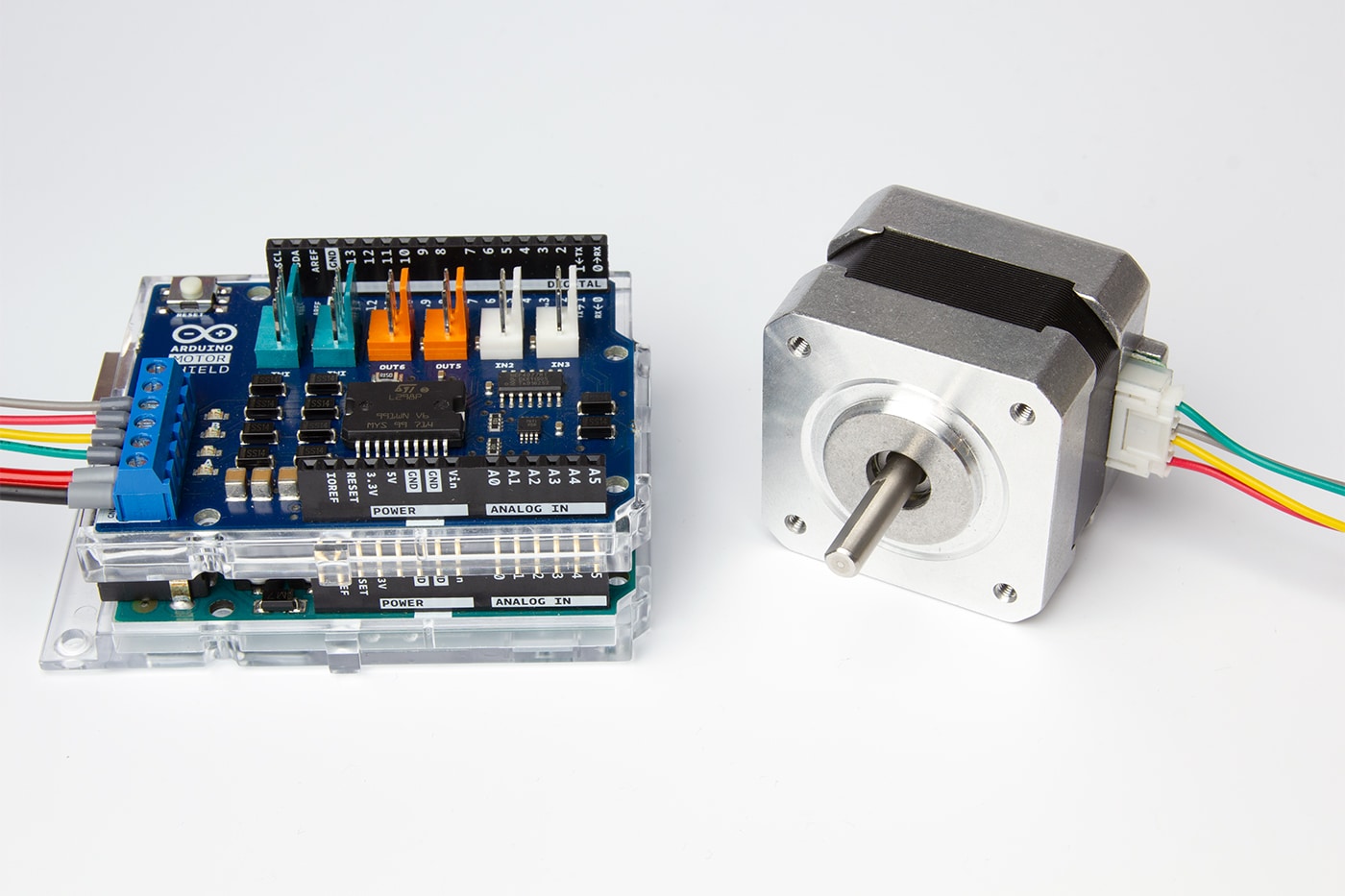 The shield ist for DC motors and voltage controlled bipolar steppers.