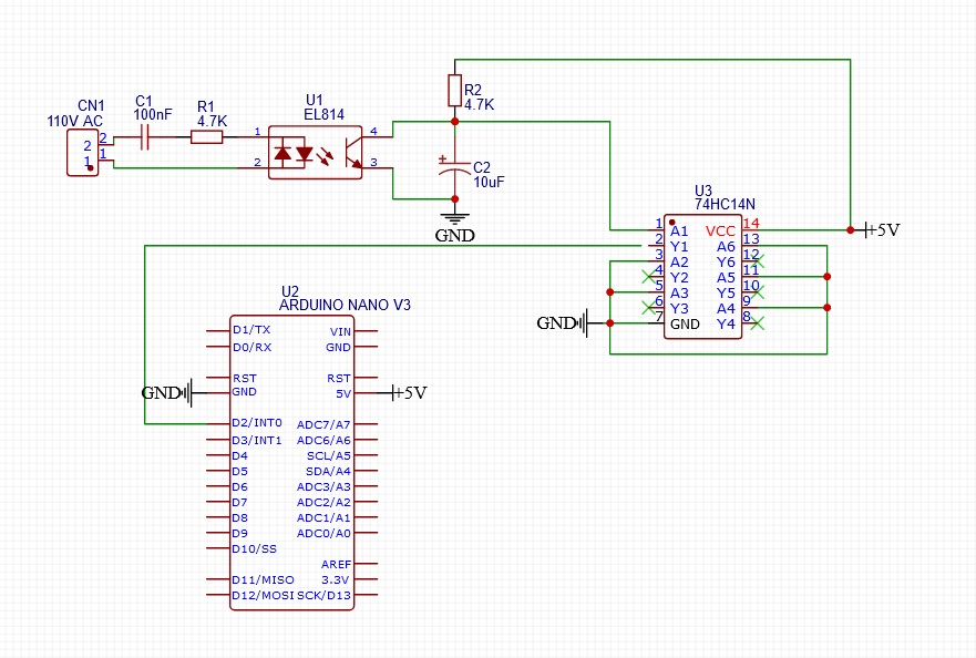 As you can see, they used a Schmitt trigger. I have never used this IC and have little or no experience with it. The other components are familiar. They used here 814 optocouplers, that is why I had bad readings, I used 817 optocouplers.
