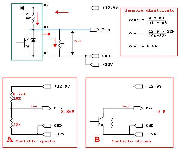 nel pin ho 8.93V contatto aperto (invece di 0) e 12.9 contatto chiuso (lo stesso)!