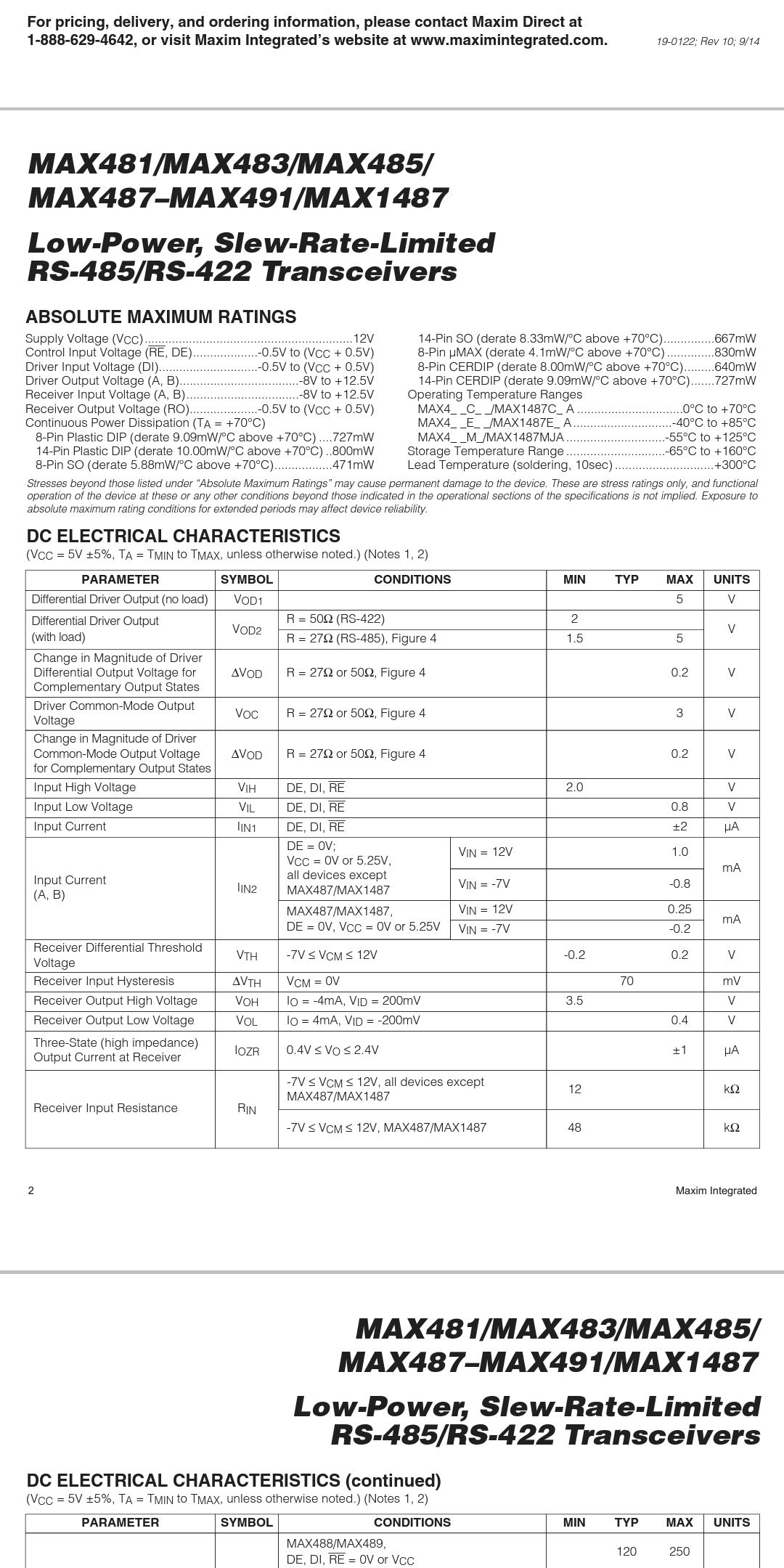 Sulla tabella leggo che con una tensione di VDD 5v la tensione minima di funzionamento dei pin RE, DE e DI è di 2.0v