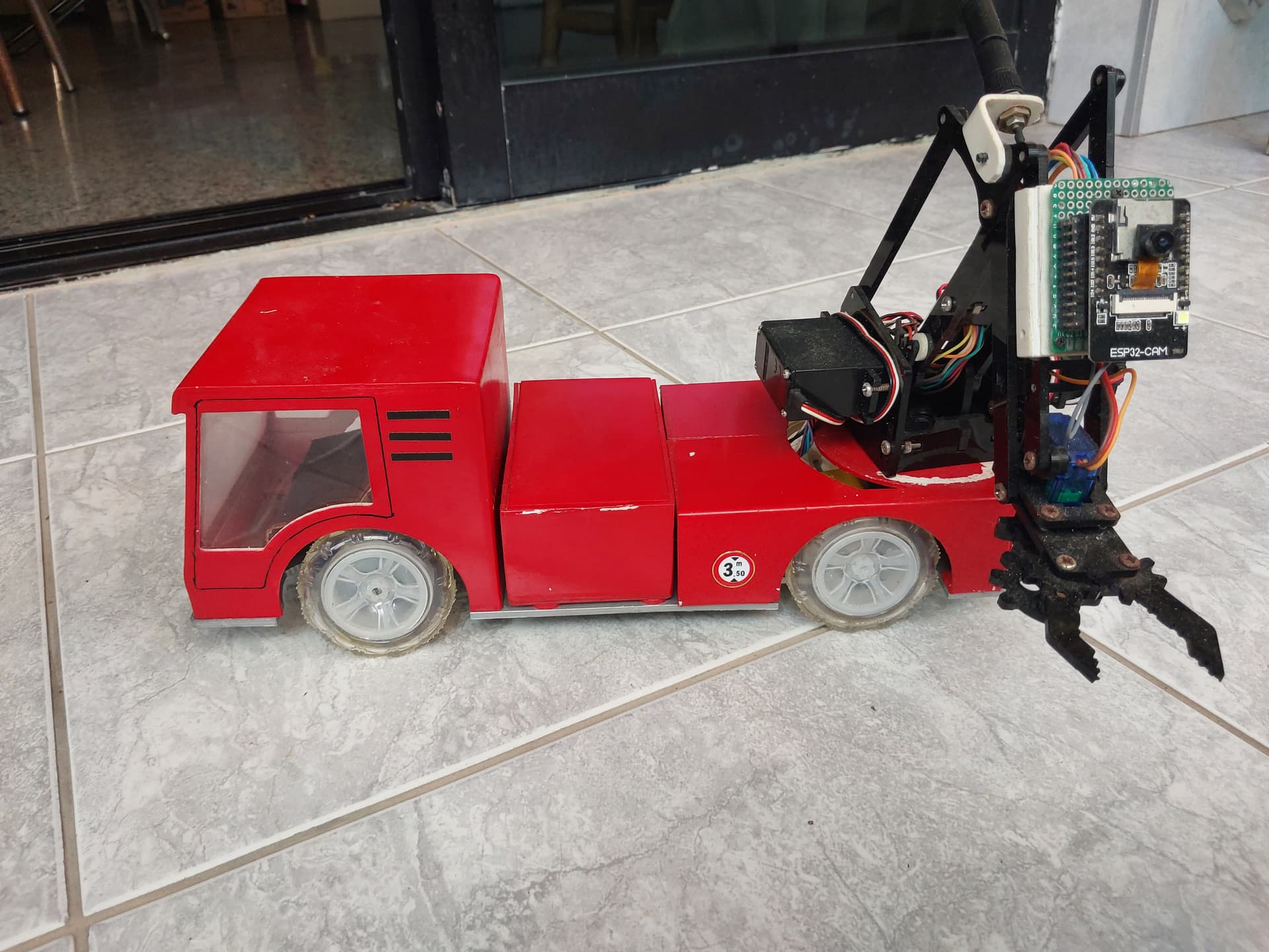It controls the 3 axes and the claw of the robotic arm and shows the images on the cell phone screen.