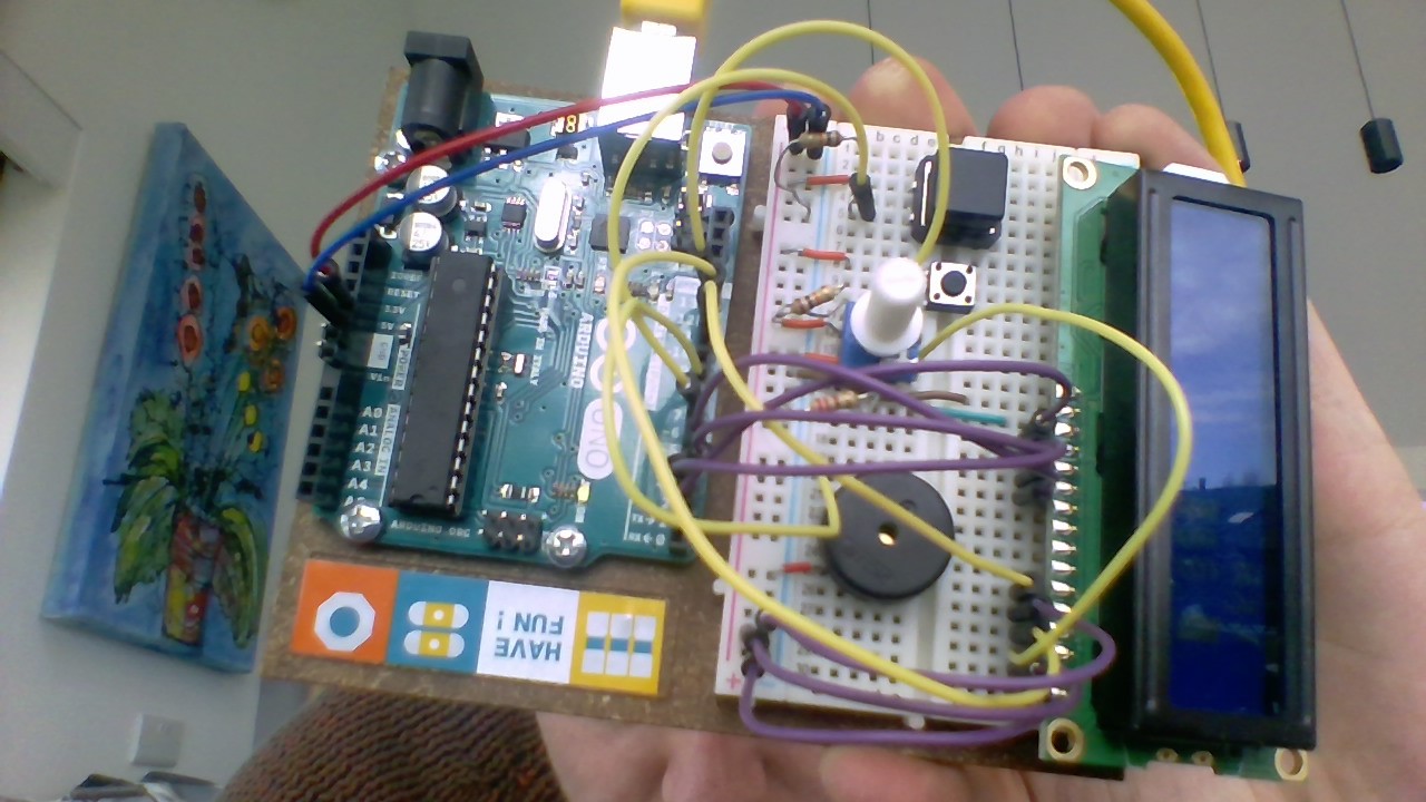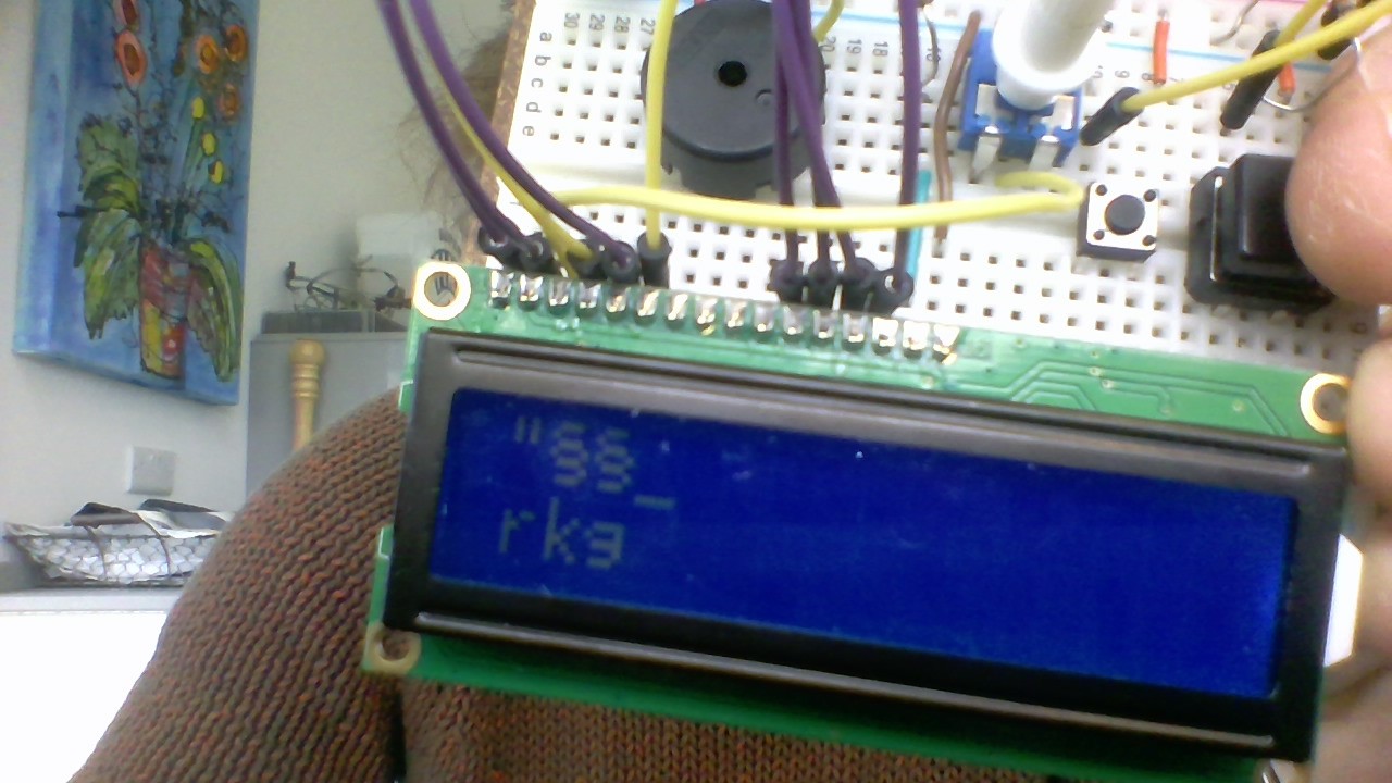 I am horrified by your 100R pot for LCD contrast. It will work but it seems an unnecessary waste of 50mA.