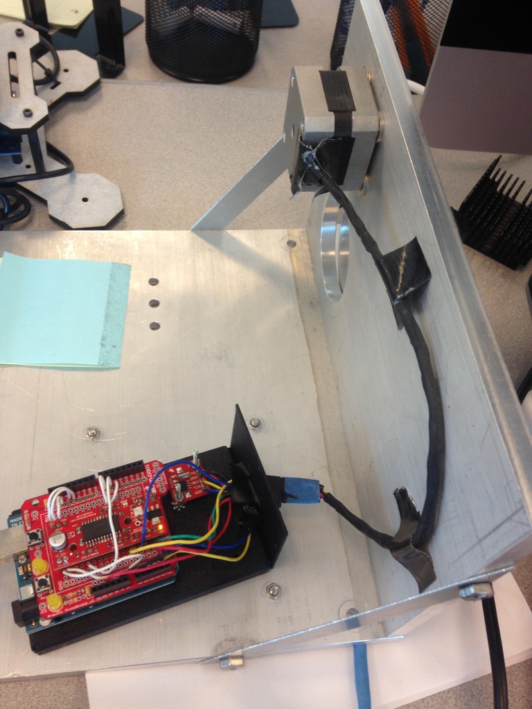 I am a bit confused. Currently, I am working on a project that uses Arduino Uno, an EasyDriver, and a stepper motor. The stepper motor is attached to a metal plate that will cover a camera lens at certain times.