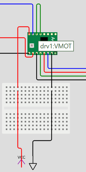 In der Wokwi-Skizze ist Vcc mit dem Dir-Pin verbunden! Das bringt natürlich so gar nichts für die Spannungsversorgung! Je nach gewünschter Drehrichtung ist DIR auf logisch LOW oder HIGH zu setzen.
