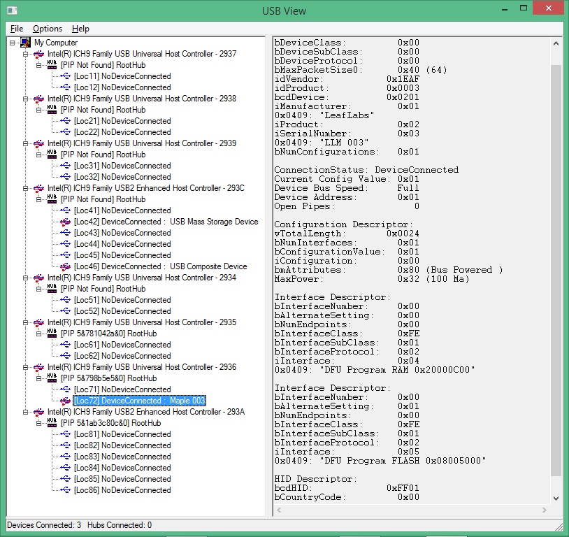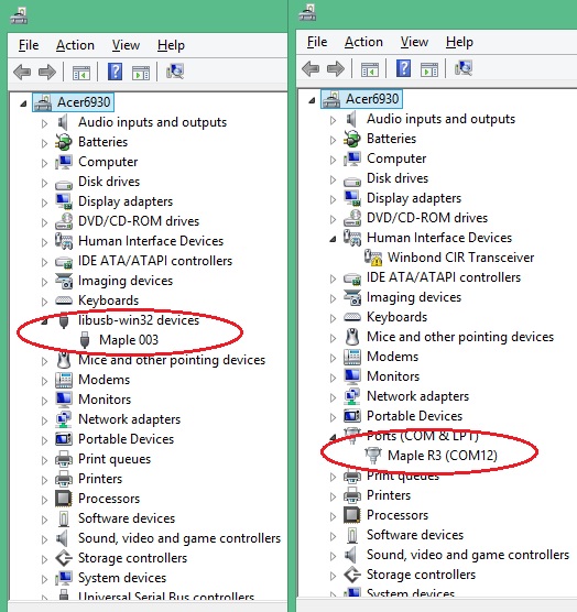However I find the Maple mini board DFU upload fairly reliable, and if it fails to enter DFU, you can force it, by pressing the "button" just after it boots, and it then enters perpetual DFU mode.