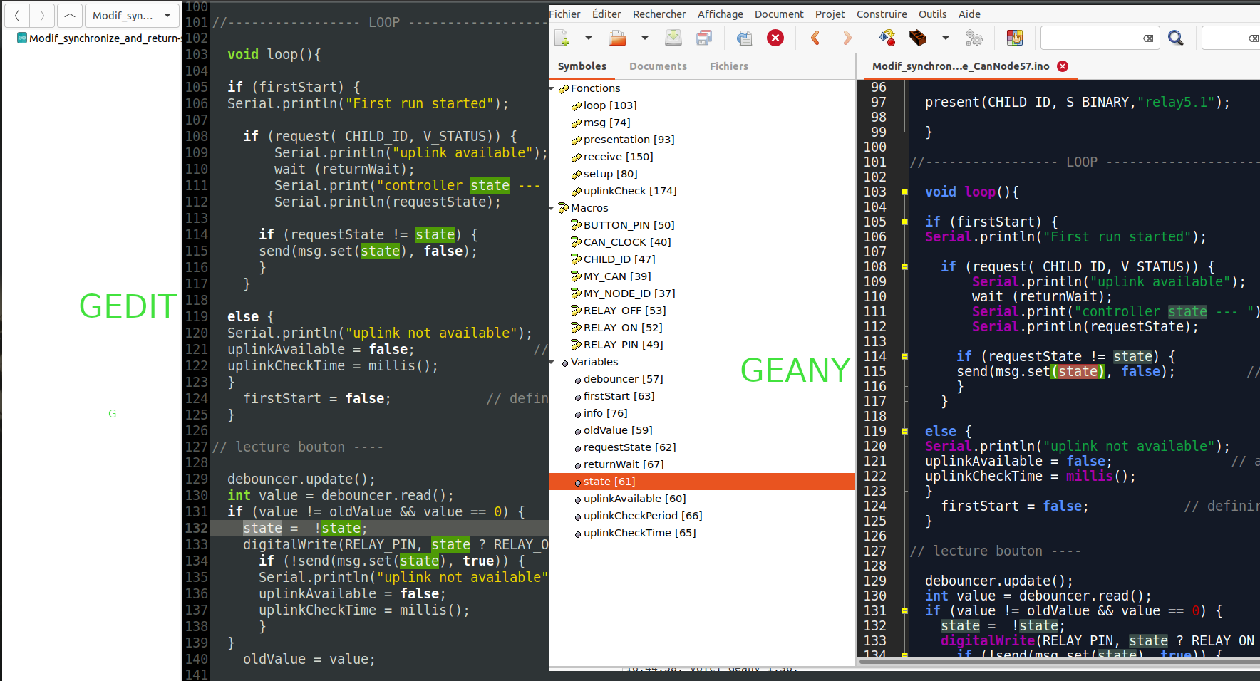 install de Geany pour avoir la liste des Symboles du croquis Arduino.