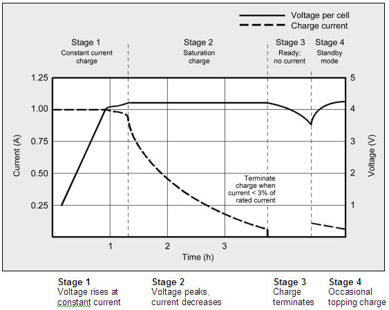 Trickle charge is initially applied until the battery reaches 3.0v or so, then it switches across to constant current charge, set by the resistor.
