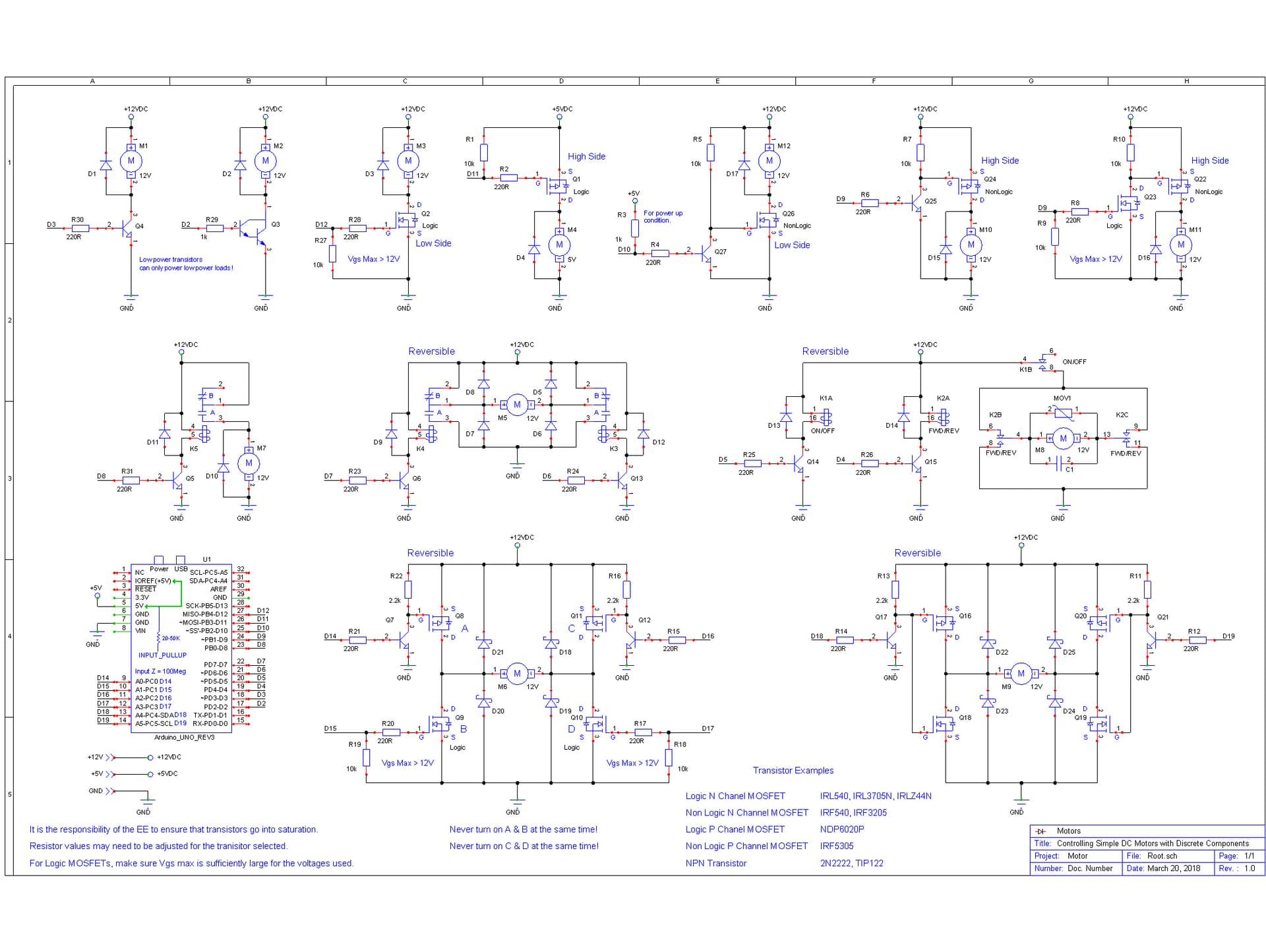 using BC547 as NPN, BC557 as PNP, BS170 as N-Mosfet and BS250 as P-Mosfet