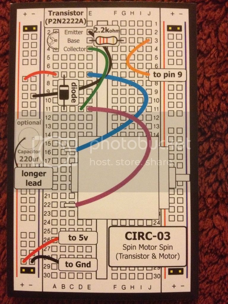 else. Just hook the base R [pin 9 point] to 5V, and the motor should wizz, and the 2222 should be