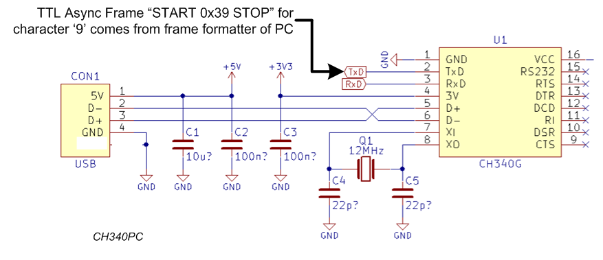 (2) At the Receiver Side (the UNO), naturally the same arranagement as in Fig-2 should be engaged to retrieve the original TTL format from the incomging USB format from the RXD-pin of U1.