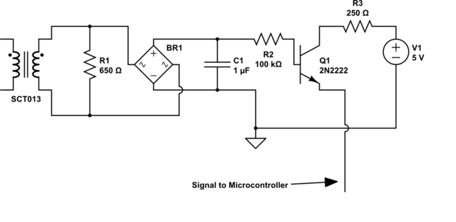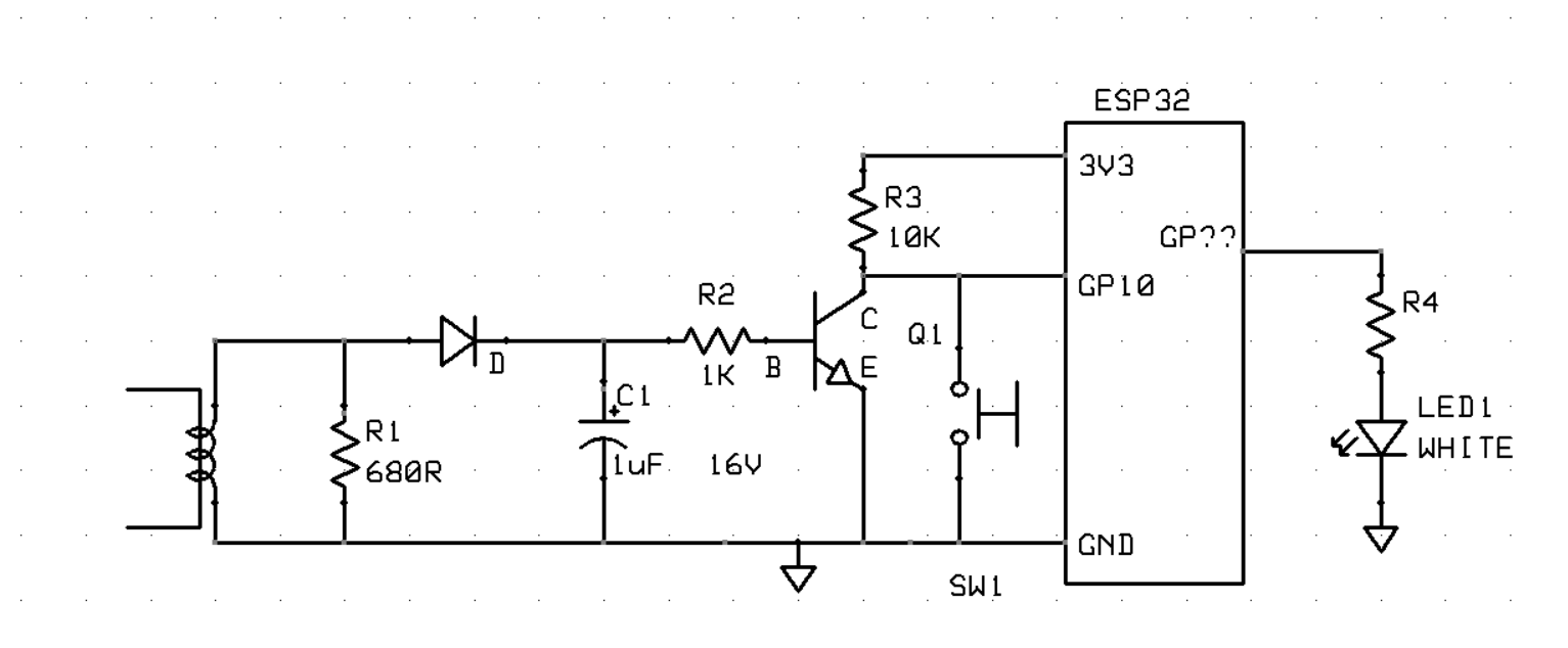 I want to use a current transformer to trigger esp32 input ( negative active ) this is my schematic