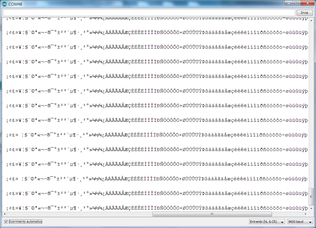 After a few successful printout with the expected Arduino ASCII logo, I've started seeing weird strings of text instead of the logo.