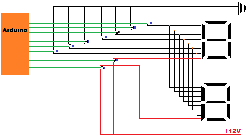 Now, Arduino can't control 60mA & 12V per segment directly. It will not be connected to the LEDs at all.