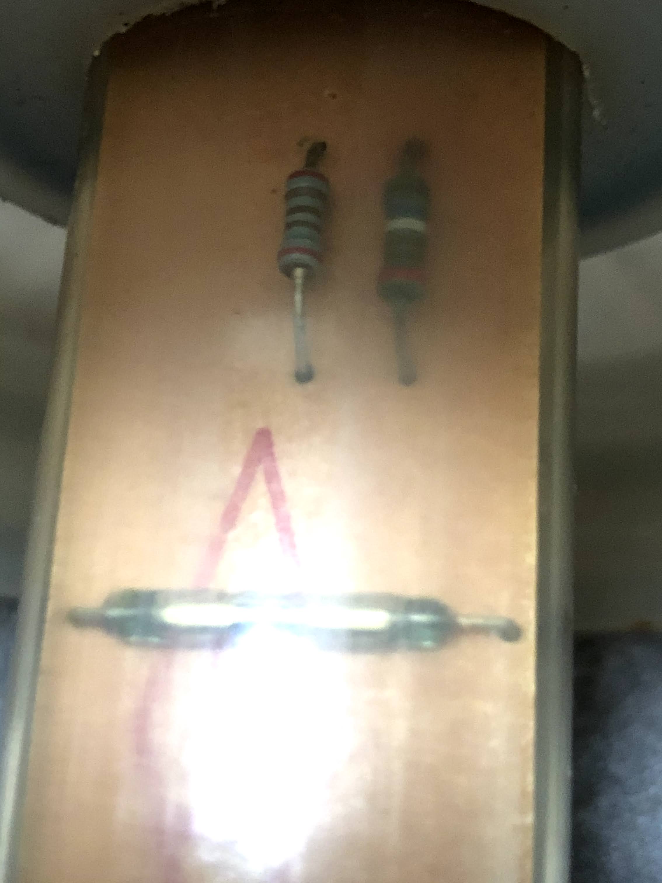 Irgendwie sind die Farbcodes auf den Widerständen nicht so richtig passend zu Deinen Widerstands-Messwerten. Habe versucht mit Deinen Werten und den Farben die man einigermaßer erkennen kann, auf etwas sinnvolles zu kommen. War wohl nix.